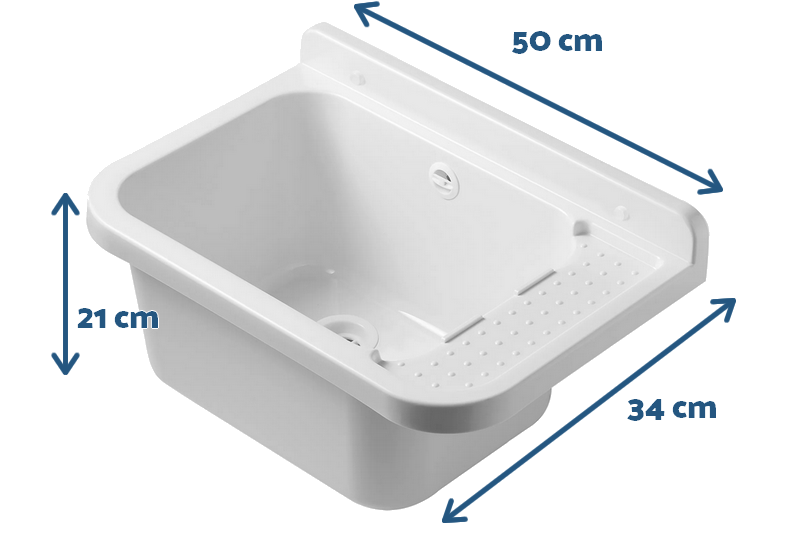 Technický dřez 50 cm BÍLÝ z polypropylenu + sifon a montážní příslušenství