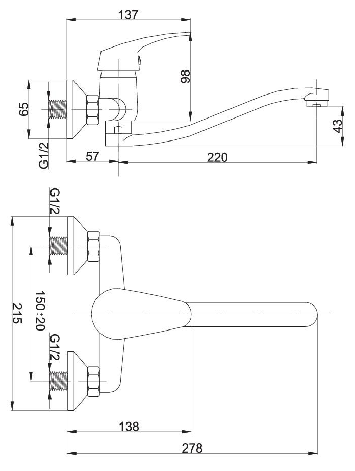 Dvouotvorová baterie pro montáž na stěnu