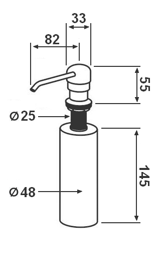 Vestavěný NEREZ dávkovač mýdla či saponátu pro dřezy a umyvadla 250 ml