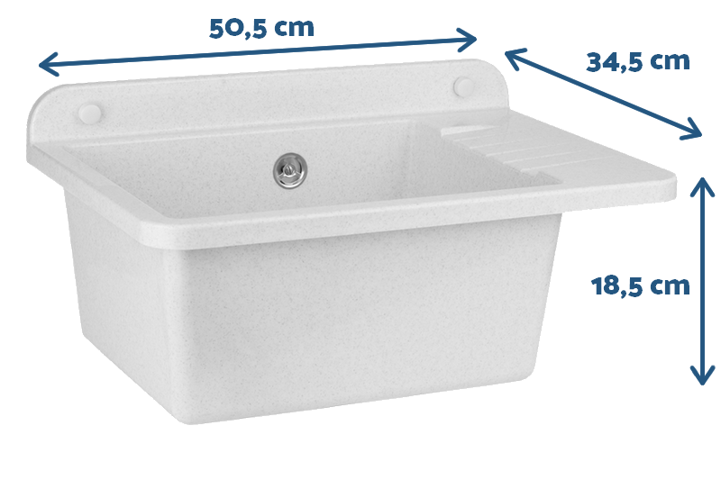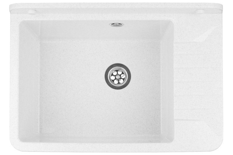 Technický jednokomorový dřez v barvě bílá žula je vyroben z kvalitního tvrzeného plastu - polypropylenu. Díky tomu je vysoce odolný vůči škodlivým vlivům a to jak mechanickým (neškrábe se), chemickým (nerezaví), tak i klimatickým (odolává extrémním teplotám). Kromě domácností tak snadno najde uplatnění i ve stížených podmínkách, jako např. v garáži, dílně, prádelně, ordinaci a jiné provozovně či výrobní hale.